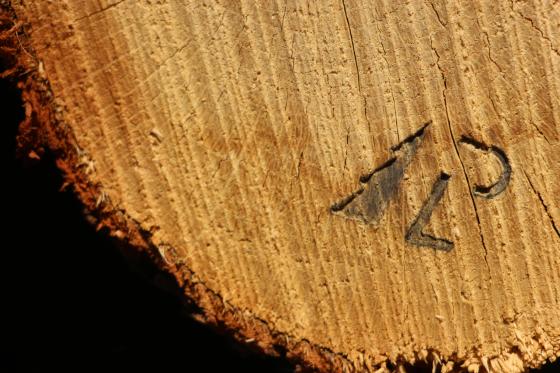 Plaster drewna oznaczony logotypem LP, fot. A. Kulis