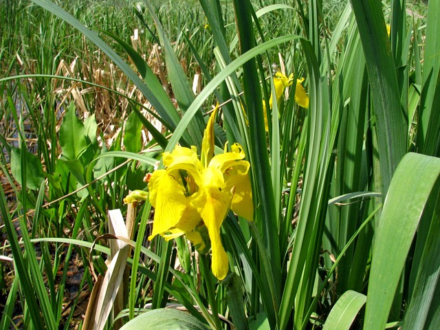 Kosaciec żółty nad zbiornikiem retencyjnym